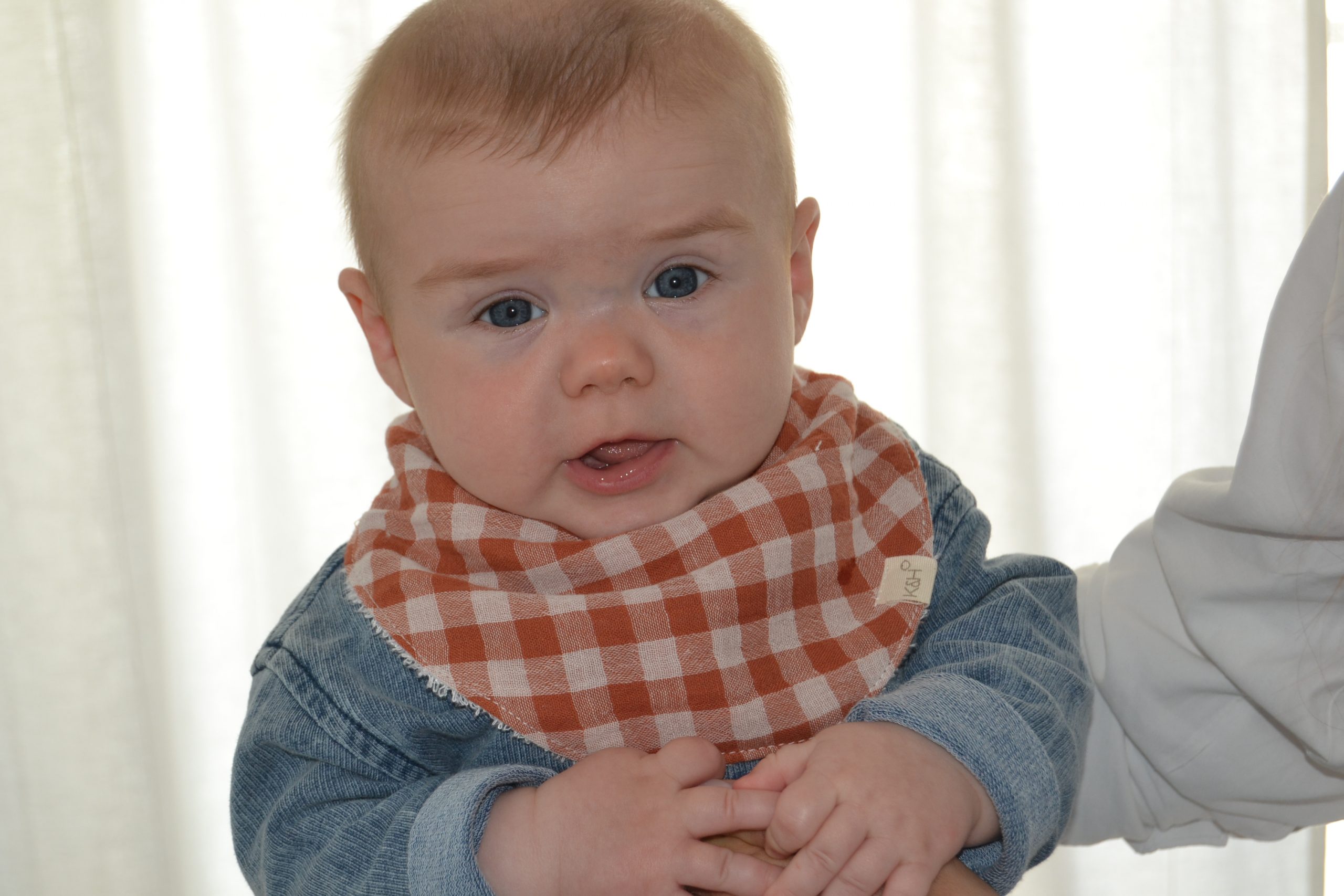 El babero bandana es un imprescindible en la canastilla de tu bebé. Es ideal desde el nacimiento y se pueden utilizar durante mucho tiempo. Su función es recoger la babita del bebé y así evitar que se moje la ropa. El cierre es de velcro para poner y sacar con facilidad. Está está confeccionado en tejido de muselina 100% Algodón Orgánico y Rizo de Bambú que es increíblemente suaves y súper absorbente.