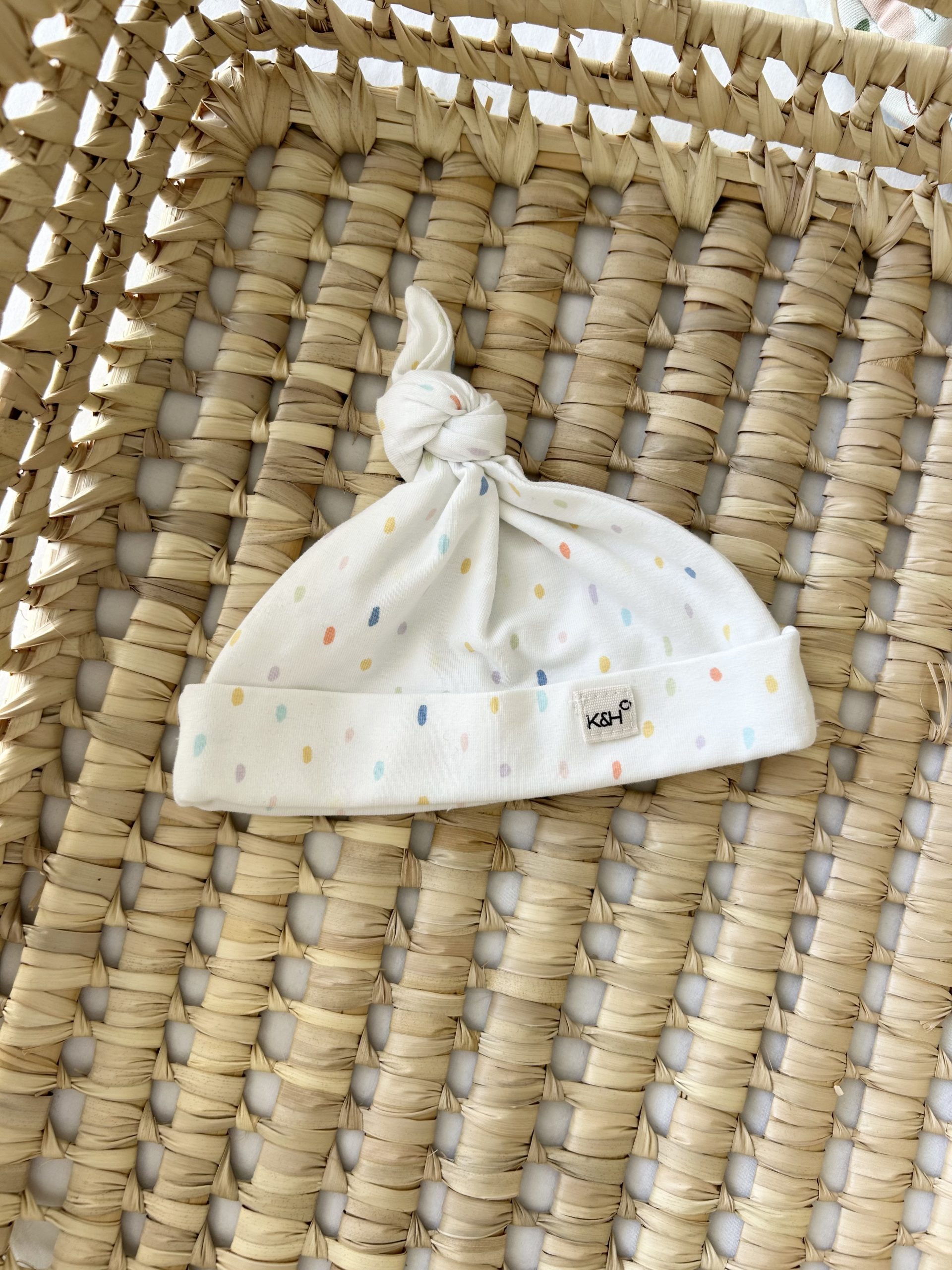 El gorrito es el complemento imprescindible para que el bebé recién nacido no pierda el calor nada más nacer. Están confeccionados en punto de Algodón Orgánico.
