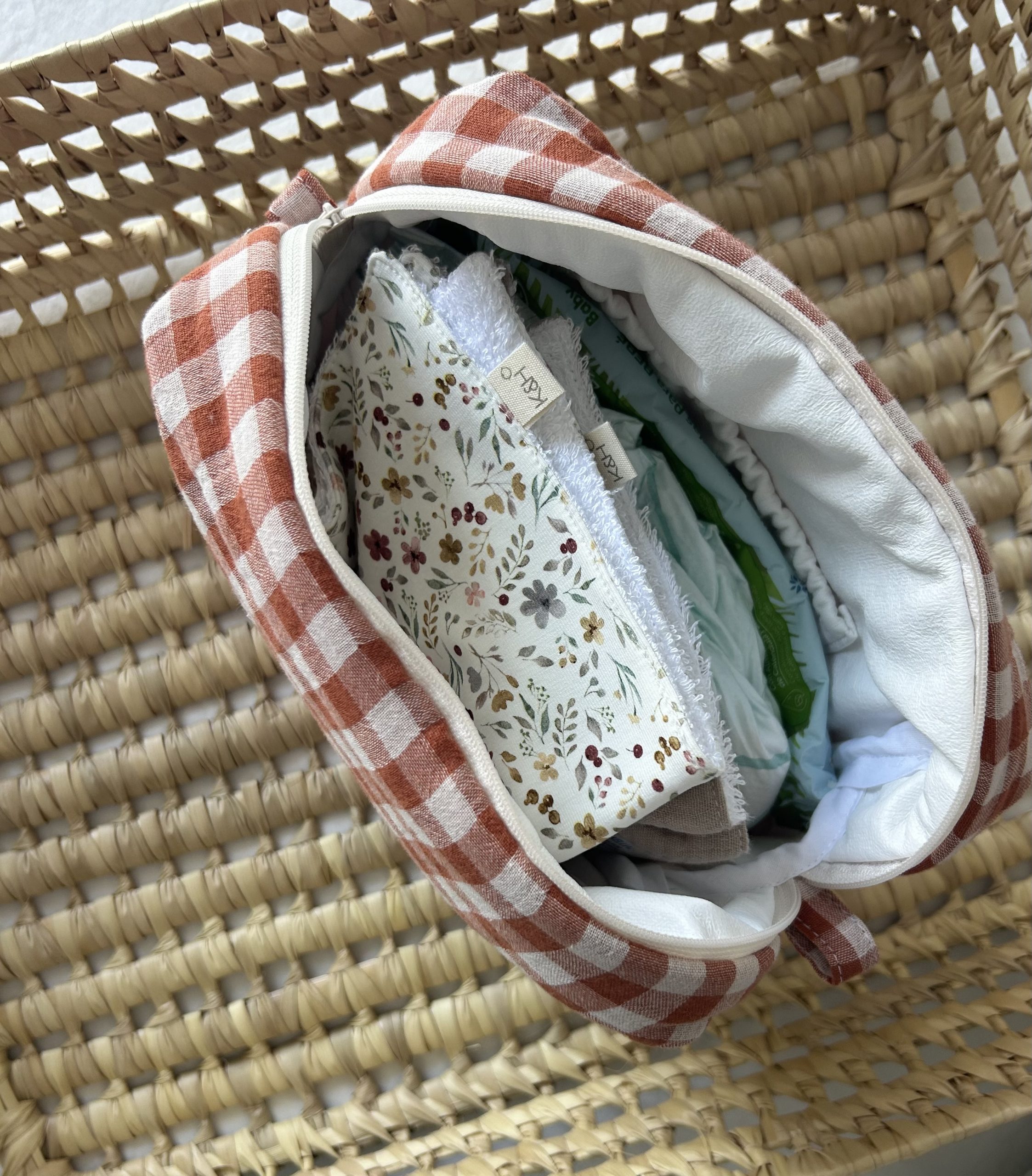 El neceser es un imprescindible para llevar todas las cositas de tu bebé. En él guardarás pañales, toallitas, cremas y todo lo que necesita el bebé fuera de casa. Lo utilizarás, además, para llevar sus cositas al hospital. Es acolchado para que las cosas del interior estén protegidas, su cierre es con cremallera y su interior es impermeable. En el interior, además, incluye un bolsillo para poder llevar accesorios de menor tamaño.
