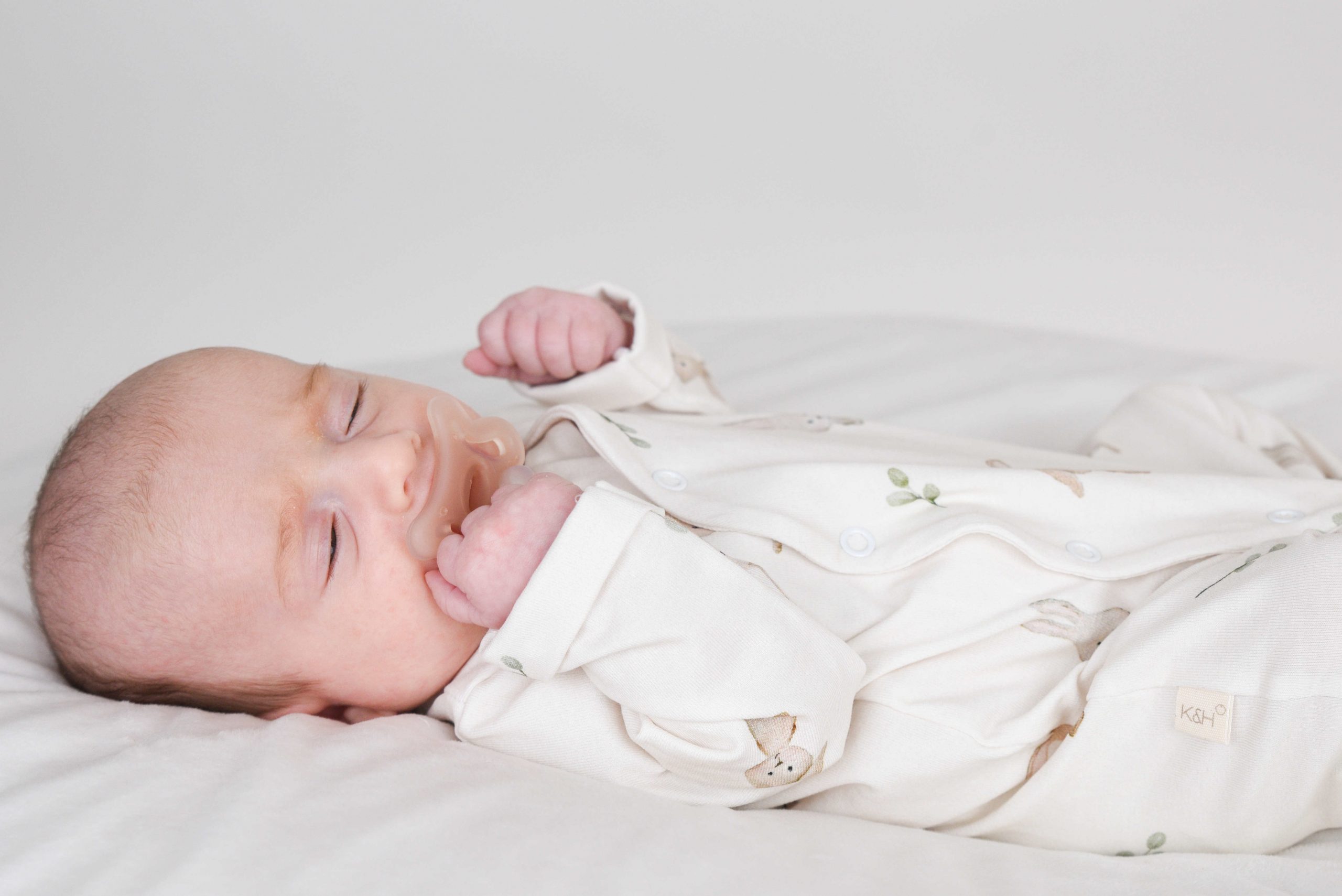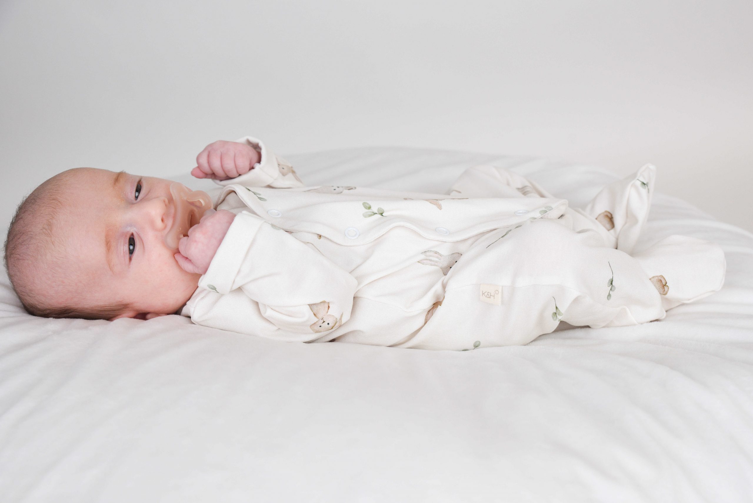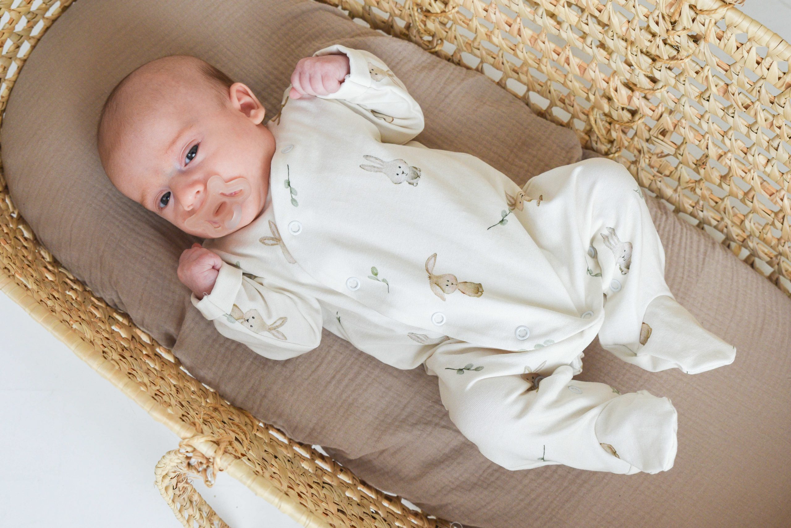 El pelele es una prenda comodísima que no puede faltar cuando nace un bebé. Es de manga larga y se abre completamente con corchetes para que sea súper fácil poner y quitar al bebé.