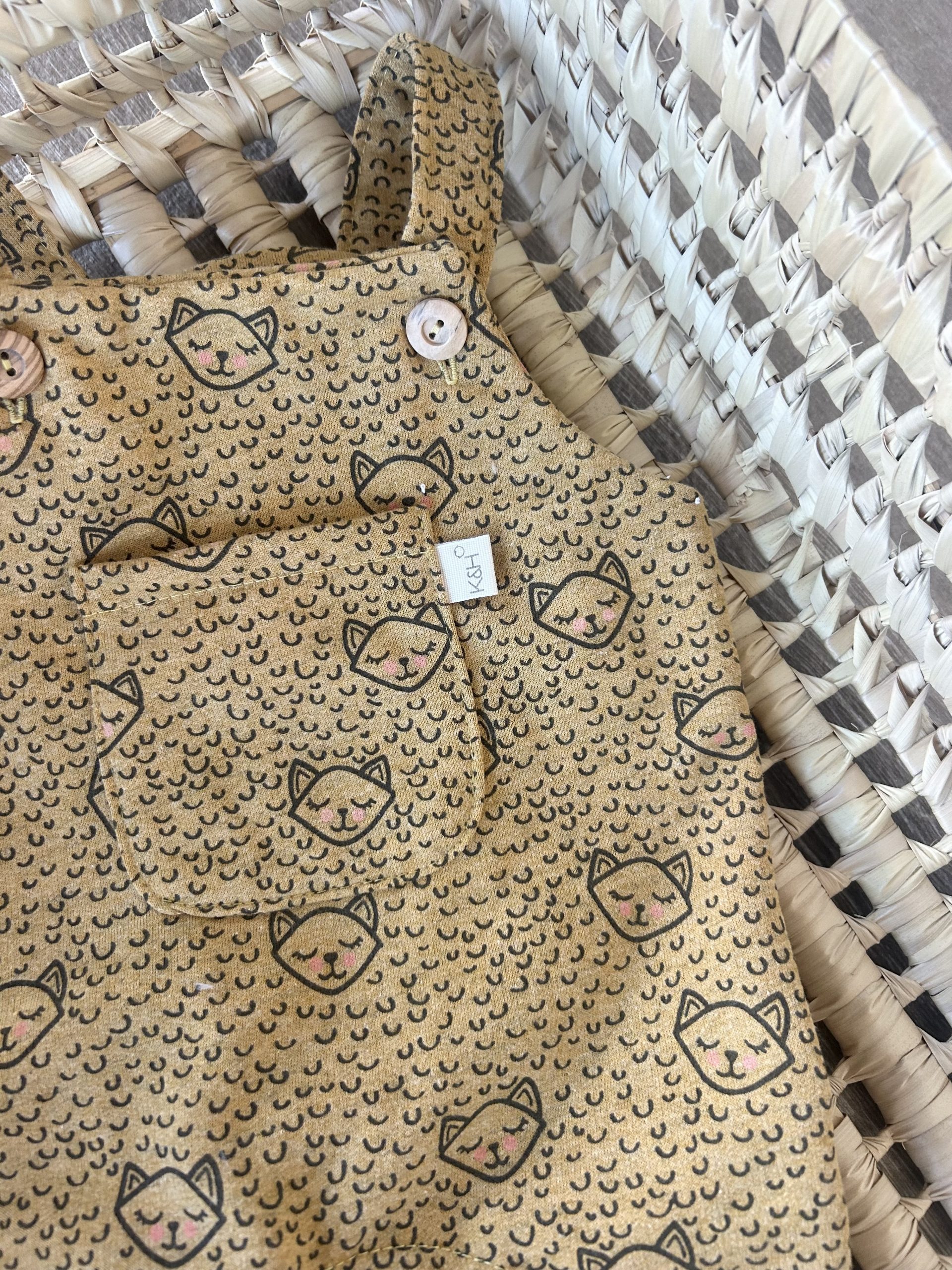 Peto de pantalón largo confeccionado en tejido de sudadera con pelito por dentro súper calentito para que tu bebé vaya monísimo a la par que comodísimo y no pase frio. En los tirantes lleva dos botones de madera natural para poder regular la talla. En la entrepierna lleva corchetes para facilitar el cambio del pañal.