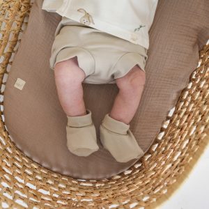 Los peúcos son la mejor opción para cubrir los pies del bebé cuando lleve ranita y que no pierdan el calor corporal. Son fáciles de poner y están confeccionados en punto de Algodón Orgánico.